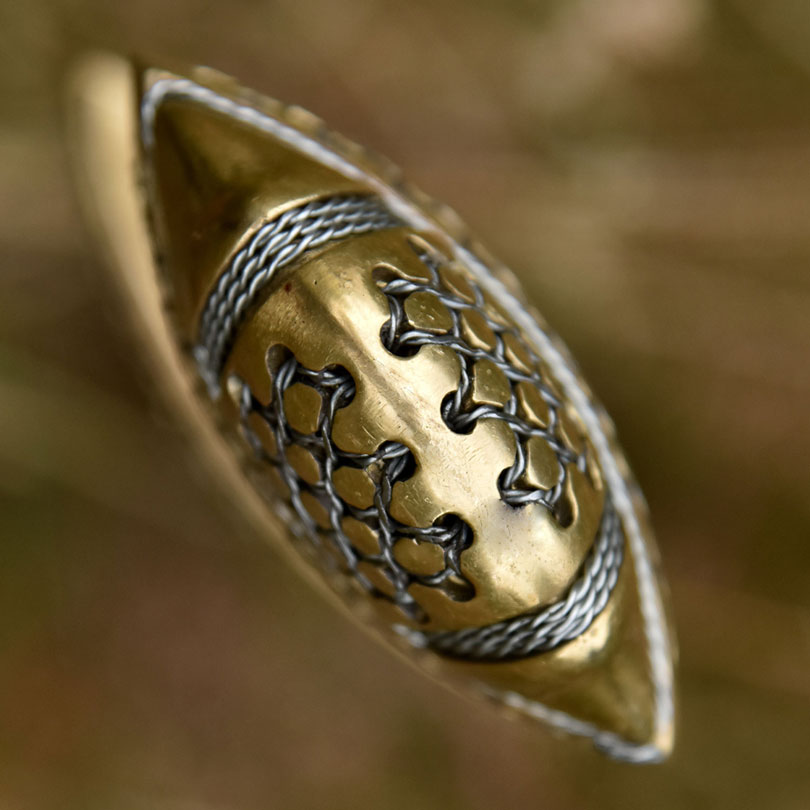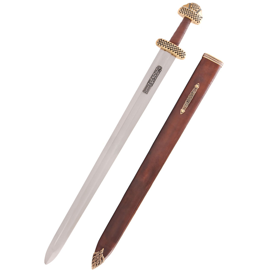 - Bei diesem wunderschönen wikingerzeitlichen Einhandschwert handelt es sich um die Nachbildung eines Fundstückes, das 1949 auf dem archäologischen Komplex von Gnёzdovo nahe Smolensk, Russland, bei der Ausgrabung des Hügelgrabs L-13 entdeckt wurde. Das zwischen 920 und 950 n. Chr. datierte, nach der Petersen Typologie für Wikingerschwerter als Typ E2 klassifizierte Originalstück wurde in zwei Teile zerbrochen und in den Boden gesteckt aufgefunden.
