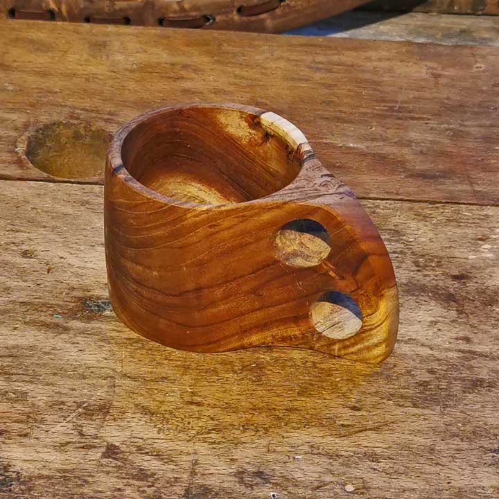 Teak Becher in Form eines Nordische Kuksa